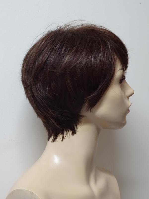 Zloženia: 30% Human hair + 70% Heat fibreParochňa je vyrobená ako tresovaný (strojom šitý model) a zloženie je 30% ľudských vlasov a 70% tepelne upravovateľného vlákno HEAT FIBRE. Je to ultra odľahčený model parochne. Tepelná úprava parochne kulmovaním a fénovaním je možná do tepoly 140 stupňov celzia. Tento druh parochne je veľmi obľúbený pre jeho cenu. Produkt je určený pre zvlášť náročného zákazníka pre svoju mimoriadnu kvalitu. Veľkosť parochne je univerzálna a dá sa korigovať gumičkami, ktoré sú umiestnené na zátylku parochne. Za účelom starostlivosti si stiahnite v položke "Návody" príslušný návod na používanie a ošetrovanie.